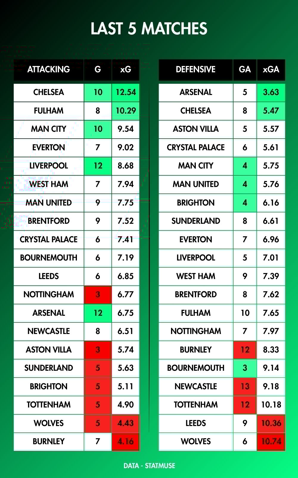 Newcastle have conceded 13 goals in their last 5 matches.