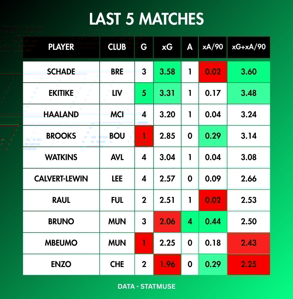 Six attacking returns in his last five. Eight in seven. xGI of 5.4. That’s elite form territory.