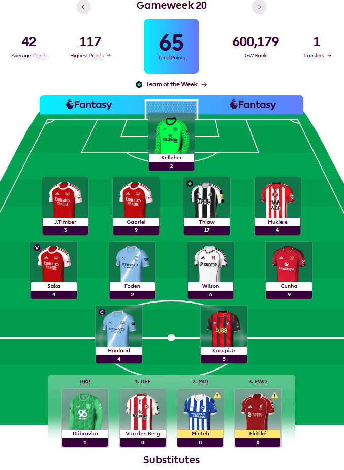 Kroupi, Wilson & Mukiele combined for 15 points, and Van Den Berg politely stayed unused. Bench boost vibes without the Bench Boost chip 😮💨